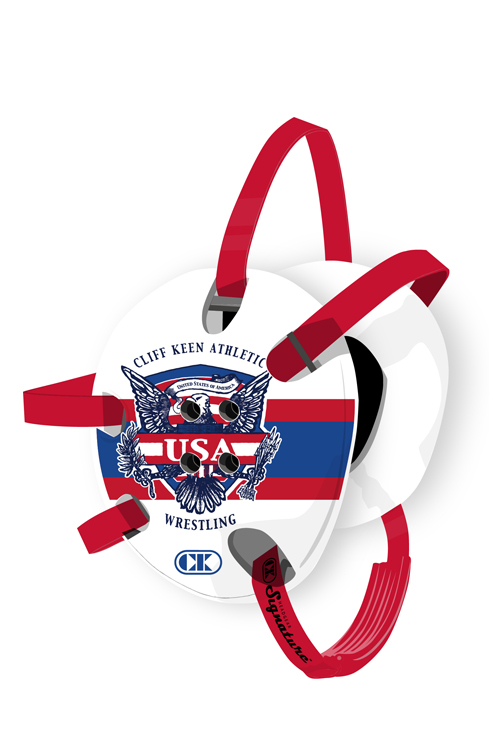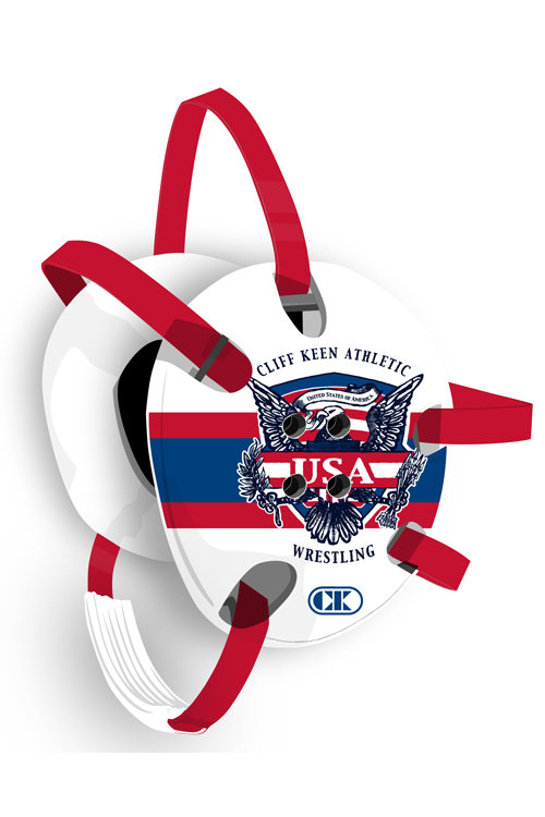 Cliff Keen E58 Signature Historic American Eagle Branded Protective Red, White and Blue Earguards for Wrestling are the best protection against cauliflower ear. Lightweight, comfortable and fully adjustable, Cliff Keen Signature Historic Unites State of America Eagle Branded Wrestling head gear is the best selling ear guard of all time, on sale for a discount price.