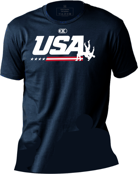 Show off your USA pride and patriotism in this new lifestyle grappling and MMA tee! You’ll love the sueded poly combat sports athletic shirt. This American men’s wrestling short-sleeve shirt is ultra-comfortable, lightweight, and has a modern athletic cut perfect for training, exercising, weightlifting, working out and just relaxing. This cool, and comfortable Cliff Keen USA athleisure wear t-shirt is on sale here at our martial arts clothing and apparel store at the best possible cheap discount online sales price. Also makes a great gift for the wrestler or patriot in your life.