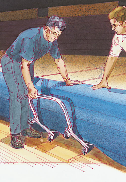- One dolly will handle mat sections up to 14″ wide. Two will handle all large mats.