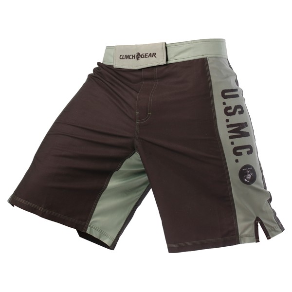 Clinch Gear Pro Marines MMA Fight Shorts For Sale at a Cheap, Discounted Price! Loose fitting, top quality board shorts for mma fighting features sueded microfiber and 360 degree flex side panels for amazing range of motion and comfort.