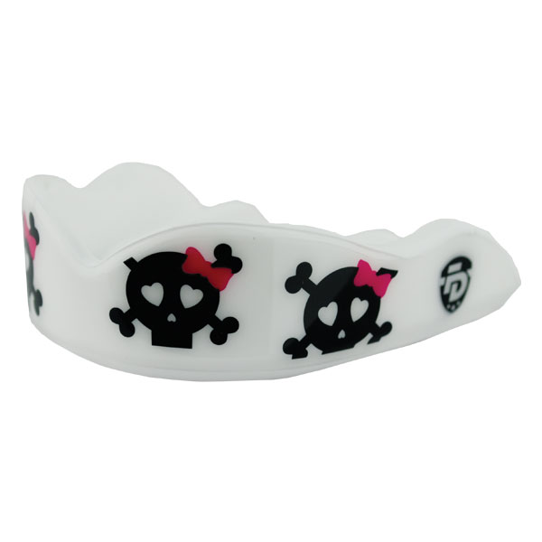 Fightdentist brand is the closest fit to a customized guard at a great value. The Cute Kills Mouthguard offers great suction which makes it easy to breathe and talk, no worries about it falling out. Advanced application process ensures graphics have long-lasting wear, and can be worn with braces. Specifically designed to fit younger athletes, the Cute Kills mouth guard has a convertible strap making it suitable for any sport. Engineered by dentists for accurate, flexible and confident fit, and an ergonomically designed shape that molds better at lower temperatures for customized fit PLUS controlled thickness in key areas provides optimal protection. Very smart design and affordable price – order yours today at the best possible cheap discount online sales price.