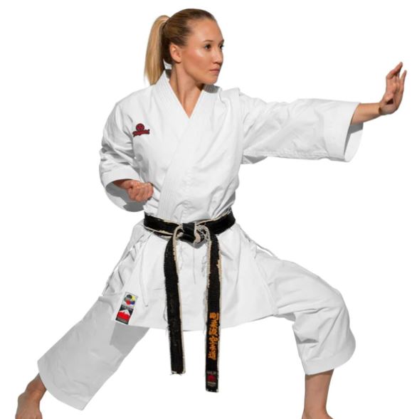 The traditional HAYASHI competition karate gi Yama has been especially developed for professional Kata athletes. Tested repeatedly during the development phase by the Fighter consulting team of experienced Karateka (World and European Champions) the Tenno Yama (jap. mountain) has been developed to a gi, whose design, material and processing meet the demands of modern martial arts kata competition. Through its texture and the close-fitting design the specially subsequently treated fabric (12 oz) not only provides optimal mobility to act more quickly and effectively, but also a spectacular “SNAP” effect. Through continuous production control exceptional processing in the seam areas, so among other arm and leg bottoms are stitched up to 10 times, the wearing comfort is supported by the proven fabric blend of 55% cotton & 45% polyester (rayon combed cotton). The karate uniform’s long sleeve shirt jacket top, and pant bottoms are comfortable, move with your body, while keeping their form. This high quality traditional martial arts gi looks great, feels great, and will allow you to be your best while performing. The machine washable and dryable WKF approved competition karate uniform is on sale at our top-rated and affordable martial arts clothing and apparel store at the best possible cheap discount online sales price.