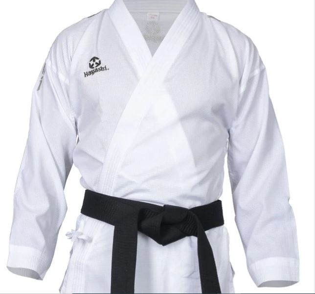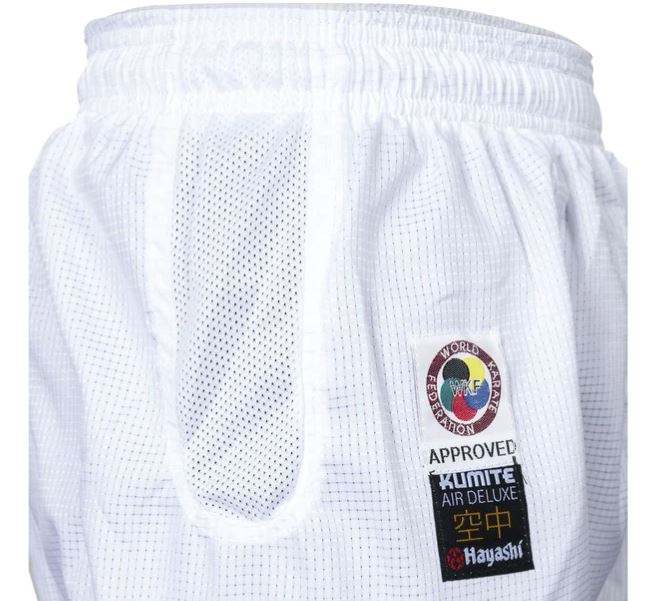 Pure white makes you and your athletic performance in the two-parter of Hayashi shine on the mat. The martial arts uniform’s jacket and pants have a perfect fit and even at the seams, great value was placed on high-quality workmanship and the best basic material. The inwardly flattened karate gi jacket corners should be emphasized in the “Air Deluxe,” which ensures a unique yet rule-compliant look. With the typical Hayashi embroidery on the chest and the WKF approved label at the bottom of the quilted reversible lapels, nothing stands in the way of your career in Kumite karate with this top-rated lightweight competition approved and sparring ready martial arts jersey.