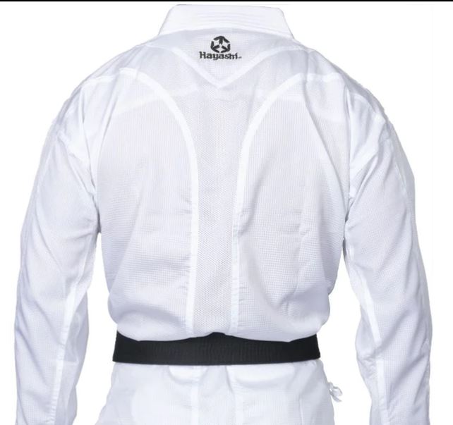 With the Fighter “Air Deluxe”, Karate Kumite-Gi Hayashi brings a real lightweight on the mat. The unique fabric structure and numerous mesh inserts not only saves weight, but they also make this martial arts Gi extremely robust against physical stress such as friction/tearing. As a breathable Gi, the “Air Deluxe” pants and long sleeve top is characterized by its functionality in sport-specific design.