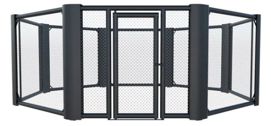 13 Foot MMA Training Cage: A real, octagon shape steel frame cage designed for MMA workouts with soft corner padding, a firm fence and all at the best possible discount online sales price!
