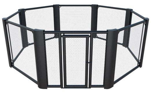16 Foot MMA Training Cage: A real, octagon steel frame cage designed for MMA workouts with soft corner padding, a firm fence and all at the best possible discount online sales price!