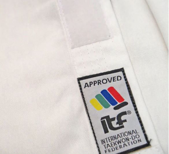 This is the TOP TEN premium, ITF approved in 2013, Taekwon-Do student uniform (dobok) is not just lightweight cotton, it’s made of a high quality durable wrinkle resistant cotton / polyester blend fabric. Official White beginner belt included