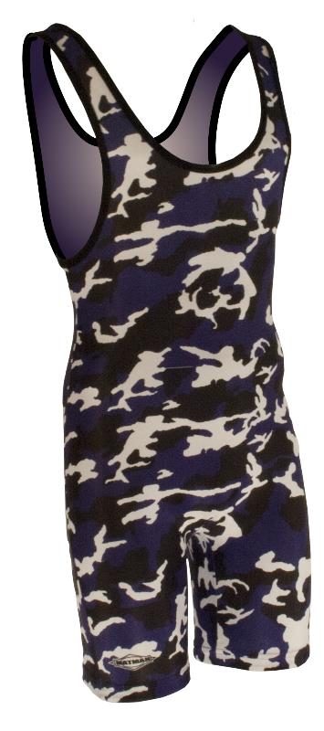 Lycra High Cut Singlet, features colored side panels, double sewn throughout with reinforced stress areas, extended leg cut with gripper elastic leg cuff. All Matman Lycra uniforms utilize Matman Moisture Release technology. It wicks the moisture away from the body which aids in cooling, dryness and comfort. Awesome sublimated camo pattern.