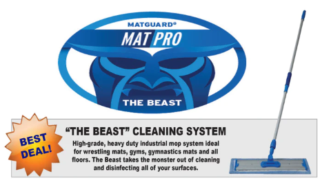 High-grade Heavy Duty industrial mop system ideal for wrestling mats, gyms, gymnastics mats, and all floors. The beast takes the monster out of cleaning and disinfecting all of your surfaces!