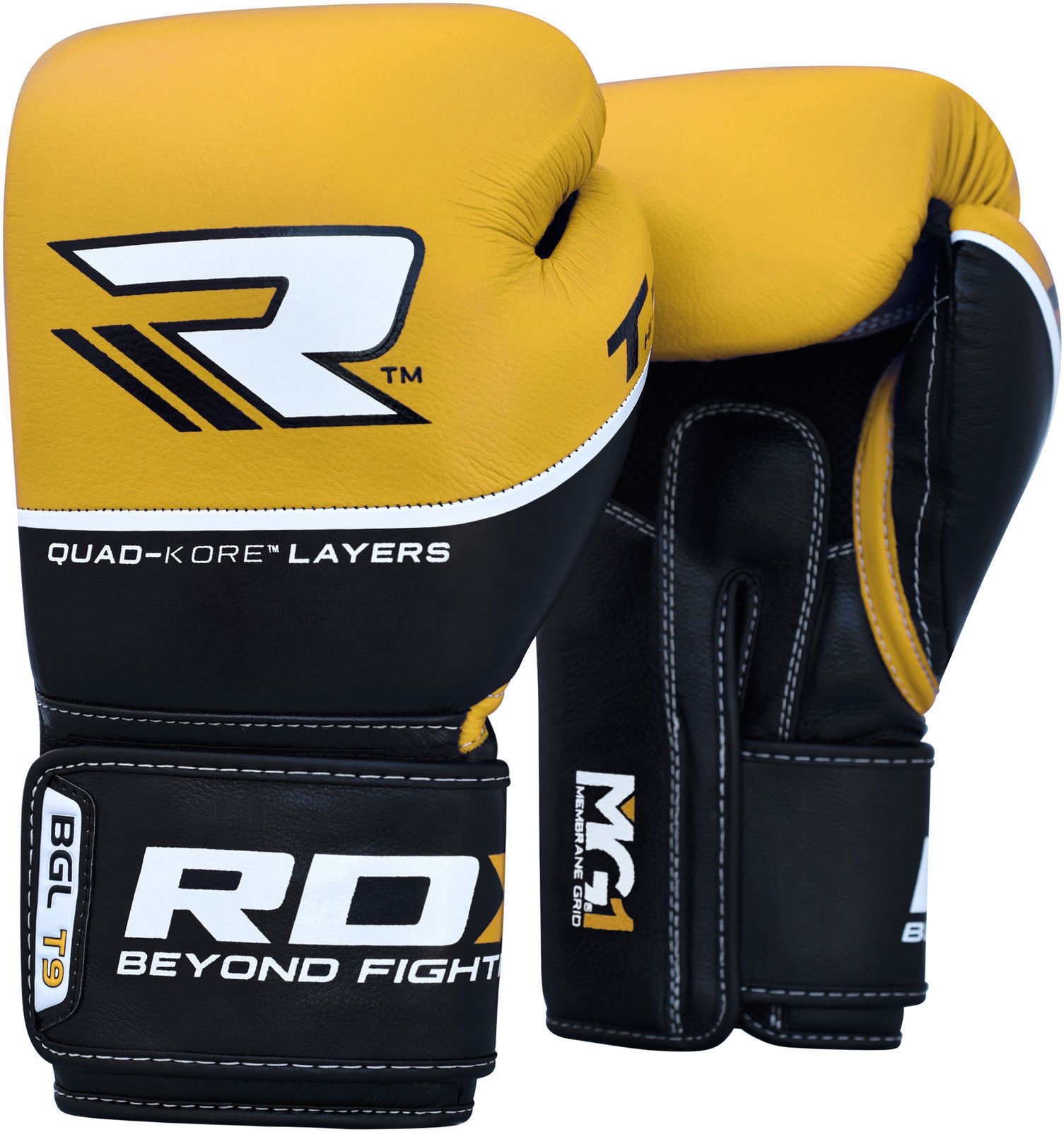 The RDX training boxing gloves are made using genuine cowhide leather processed through QUAD-KORE layers for maximum hand protection during the high-intensity training sessions.