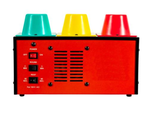 - Features advanced lighting system for easy visuals (Green = workout, Yellow = 30 seconds left in round, Red = between rounds)