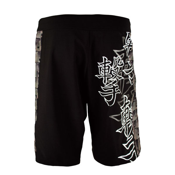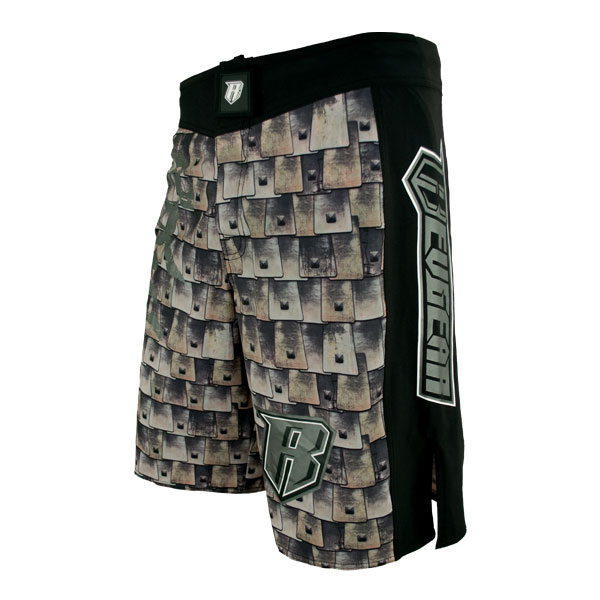 Haidate is the portion of Gusoku armor known as the thigh guard. Made of steel and rawhide, the Haidate hangs from the waist of these top-rated protective MMA trunks like a pair of shorts covering the thighs, but does not restrict movement. The Samurai Revgear Haidate mixed martial arts and grappling shorts maintains a full range of leg motion with its advanced 360 degree stretch and super lightweight poly-spandex weave. These cool, comfortable, high quality men’s MMA trunks also feature 5″ slits with reinforced seams to prevent tearing and allow for comfortable high kicks, grappling and ground and pound. There is even a mouthpiece pocket for added convenience while sparing or in competition. The top-rated and affordable Revgear Haidate Men’s MMA Fight Shorts are on sale here at our wrestling apparel and mixed martial arts clothing store at the best possible cheap discount online sales price.