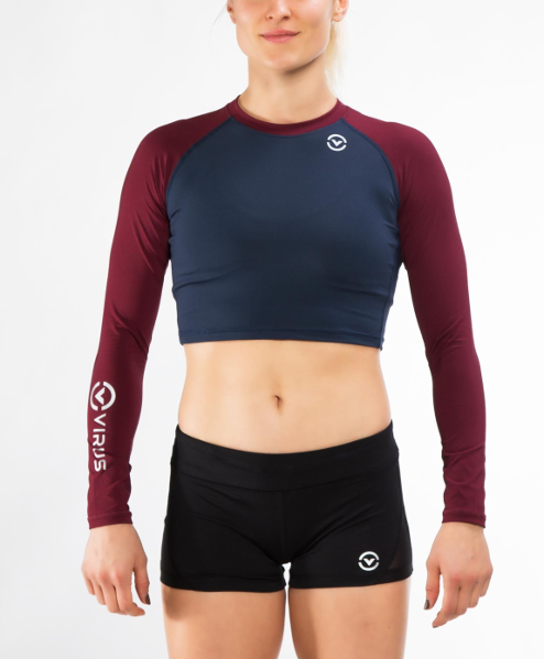 Virus Eco45 Widow Stay Cool Crop Women’s Rashguard Navy-Maroon